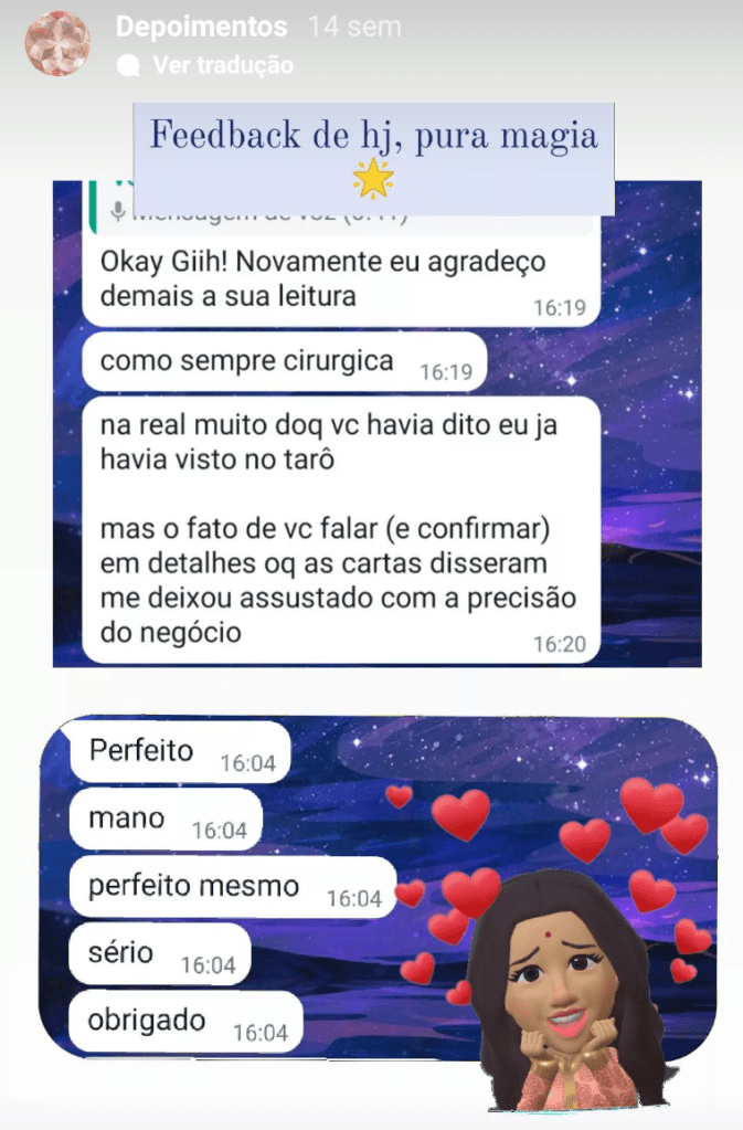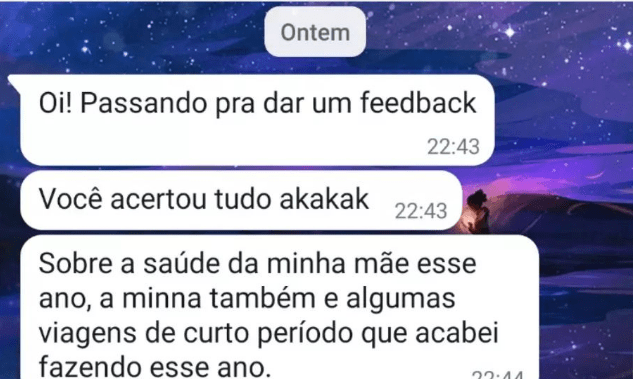1.Por aqui não rola apenas o foco na personalidade, como muitos estão acostumados: mas ao entendimento de acontecimentos concretos como promoções, casamentos e viagens!